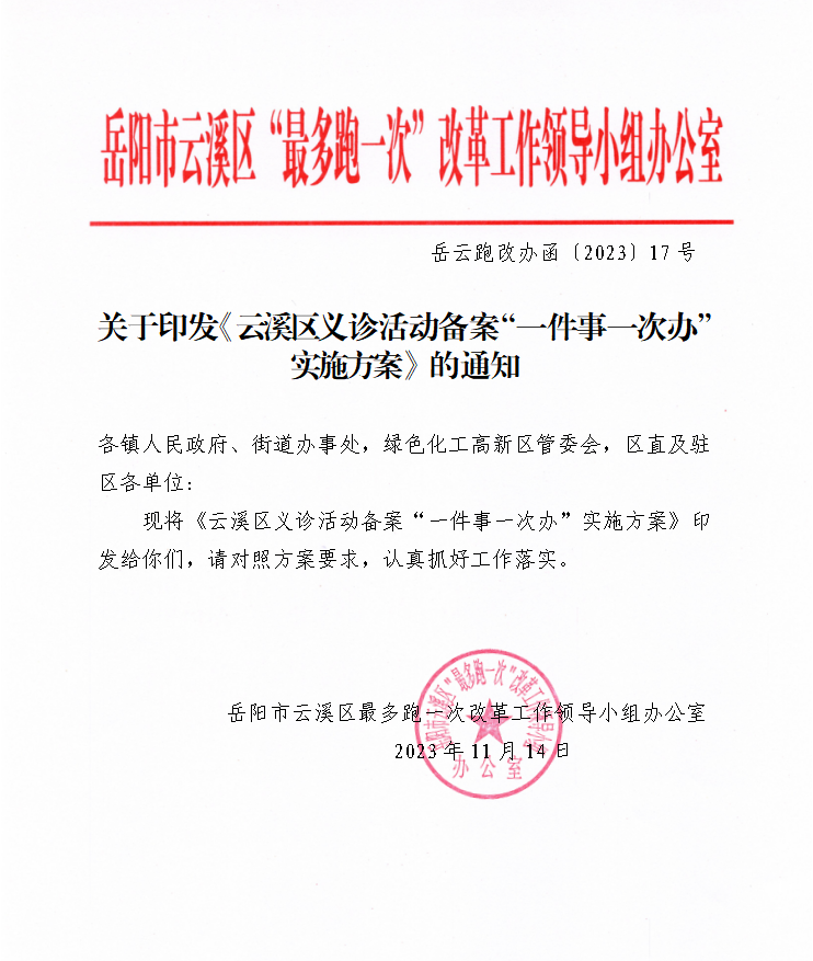 下一步,云溪区卫健局将持续健全完善部门联办机制,形成工作合力,深入推进义诊活动备案“一件事一次办”服务改革走深走实,让政策更好惠及企业群众。