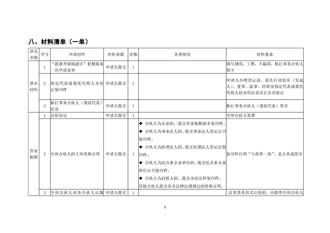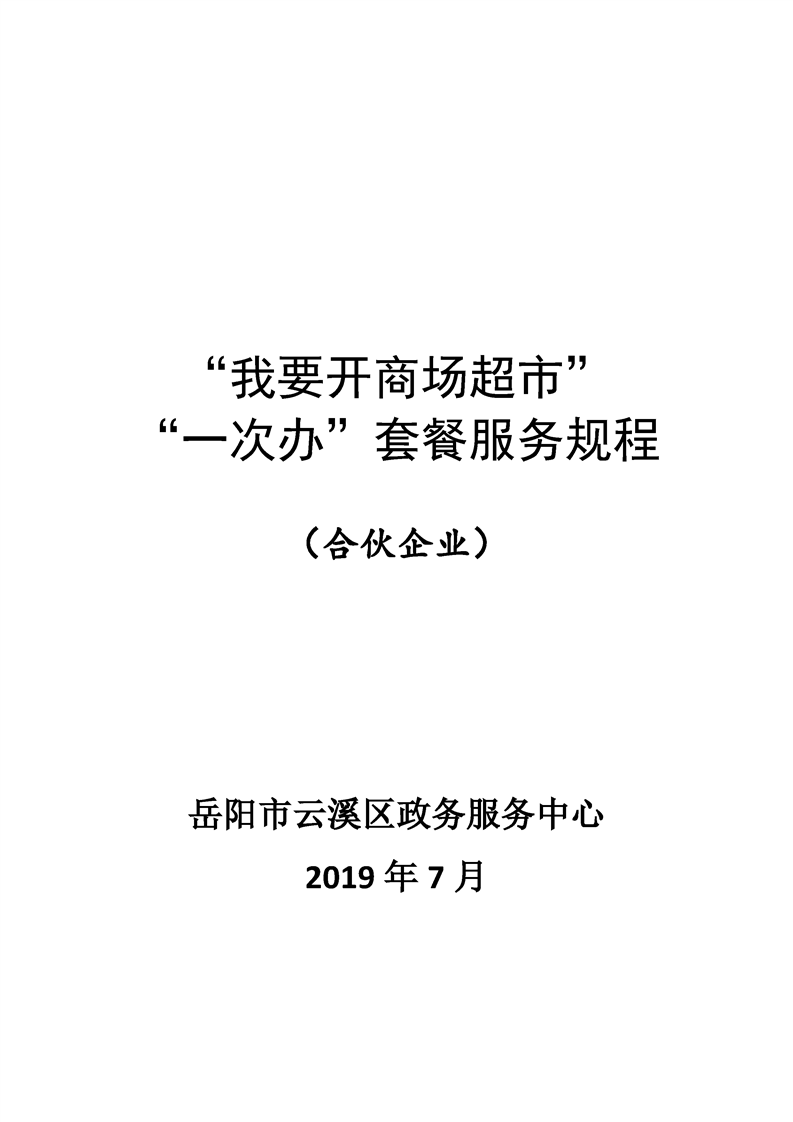 “我要开商场超市”“一件事”套餐服务规程(合伙企业)
