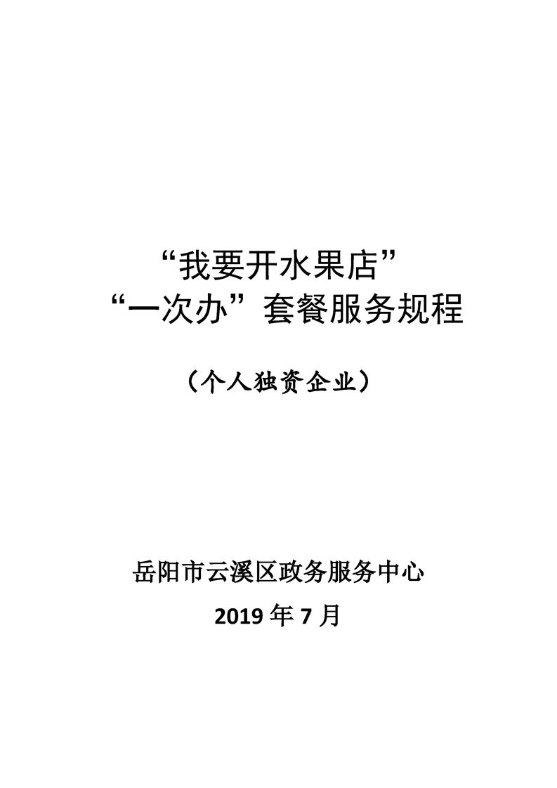 “我要开水果店”“一件事”套餐服务规程(个人独资企业)
