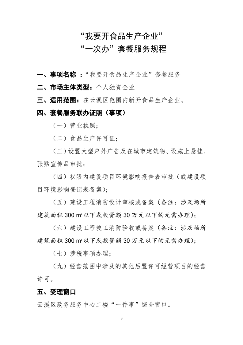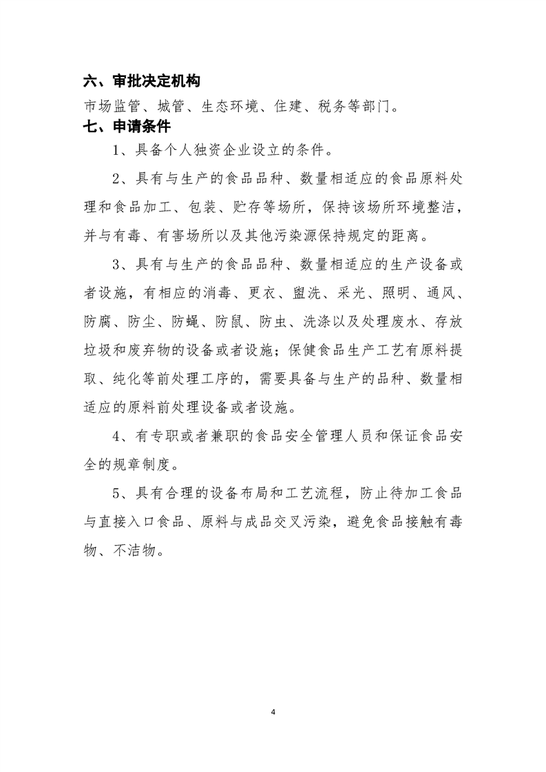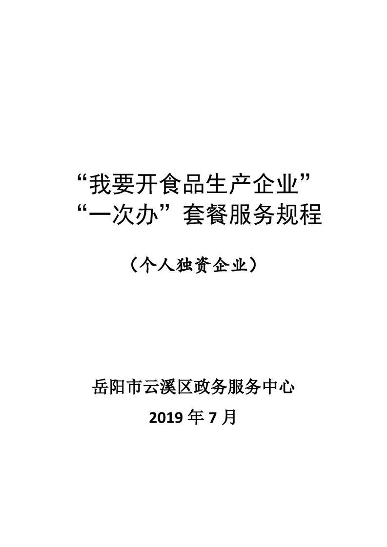 “我要开食品生产企业”“一件事”套餐服务规程(个人独资企业)