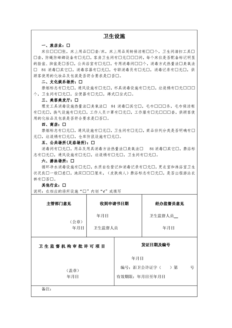 我要办理公共场所卫生许可证