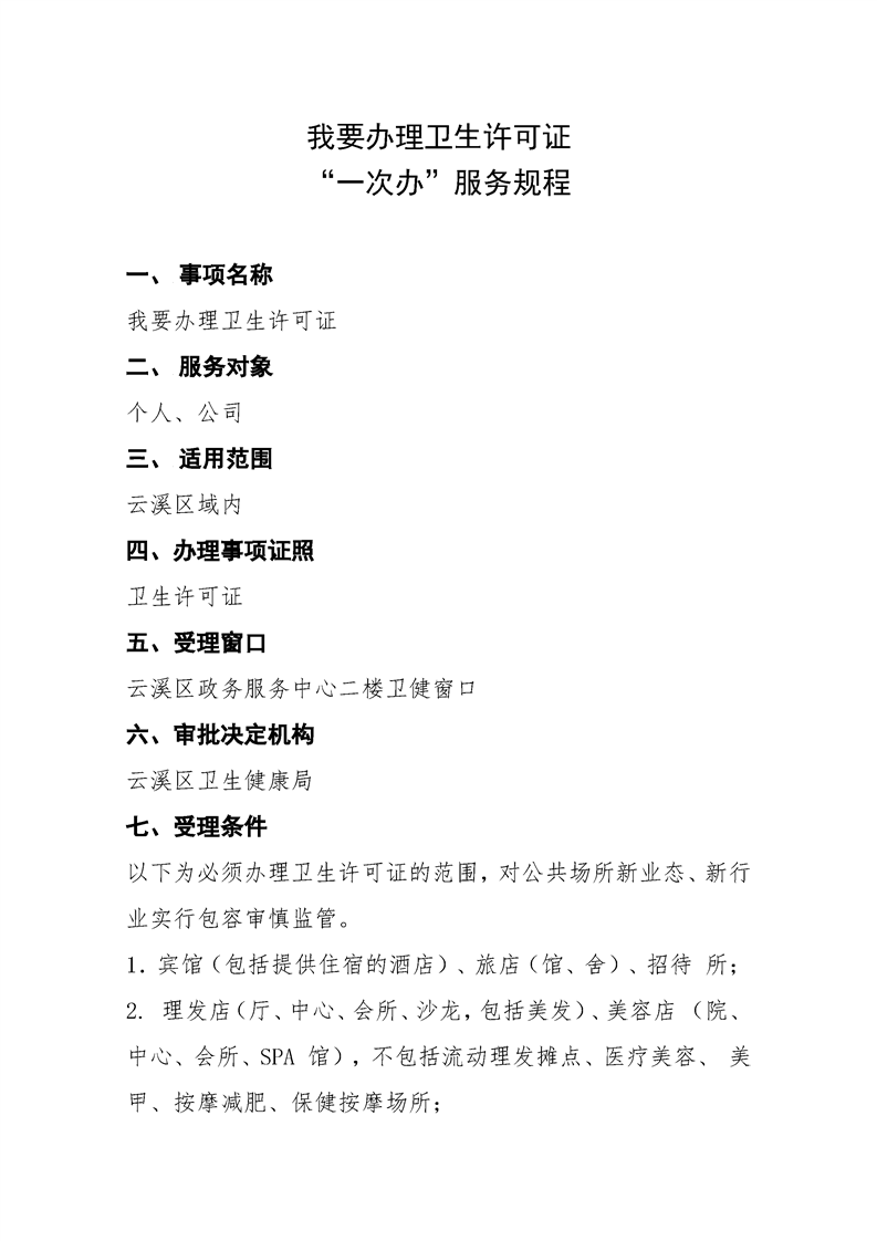 我要办理卫生许可证