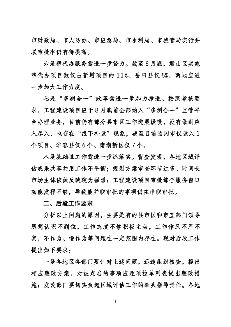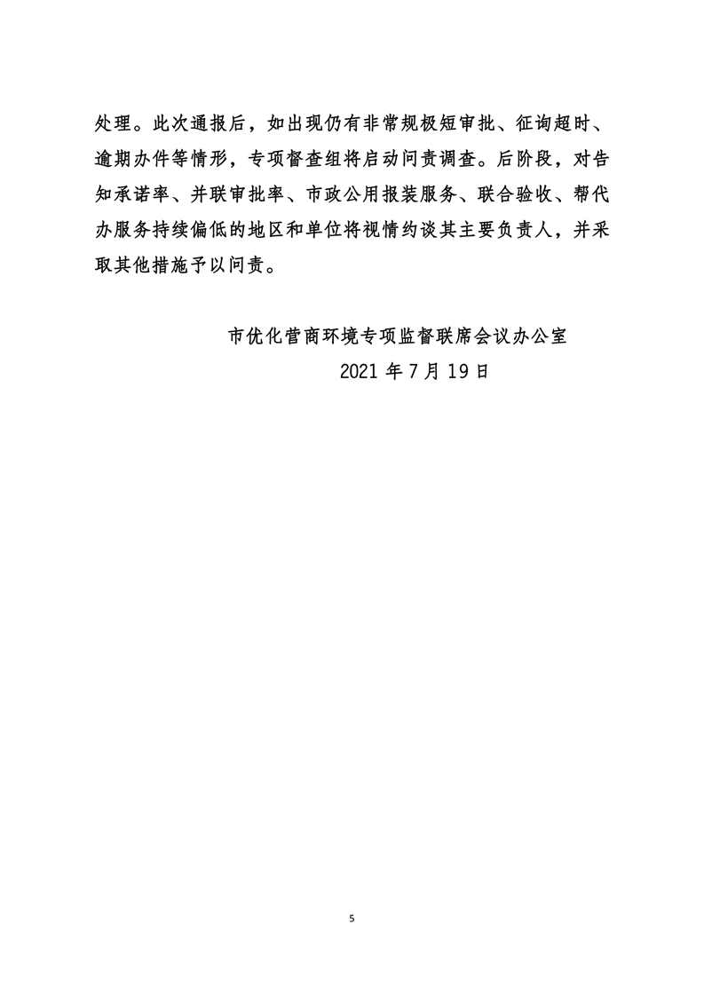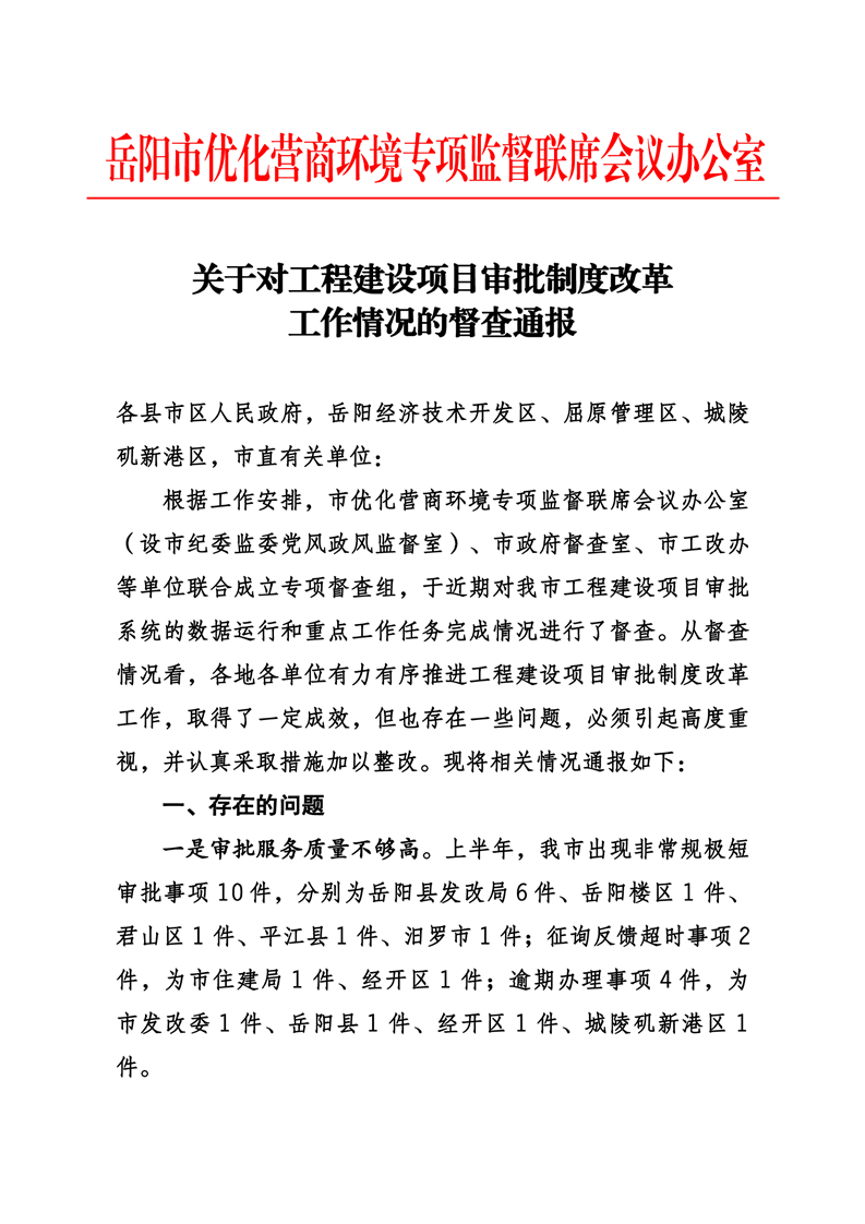市优化营商环境专项监督联席会议办公室关于对工程建设项目审批制度改革工作情况的督查通报