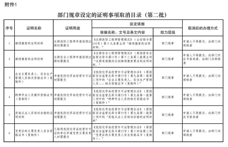 附件:1.部门规章设定的证明事项取消目录(第二批)