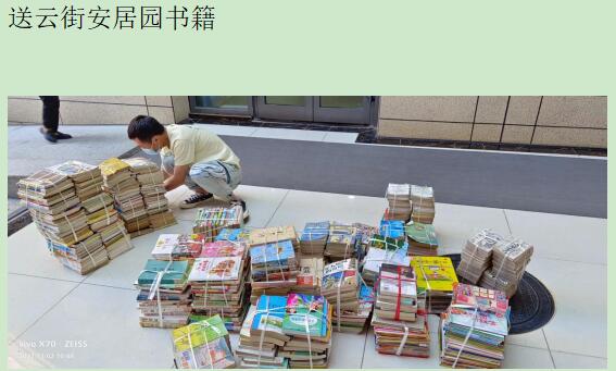 此次书籍涉及的内容有:历史、文学、种养殖、科技、法律等,得到当地街道群众的高度评价,深受干部群众学生的喜爱。