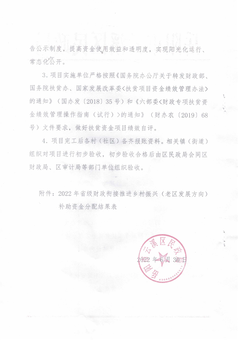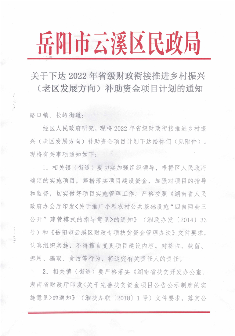 区民政局关于下达2022年省级财政衔接推进乡村振兴(老区发展方向)补助资金项目计划的通知