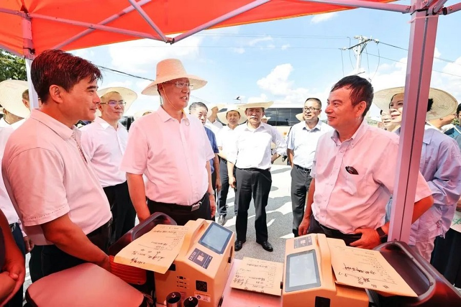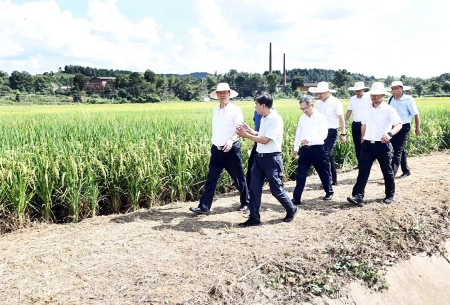 9月17日下午,省委副书记、省长毛伟明在株洲市渌口区龙门镇低镉水稻试验示范基地调研。