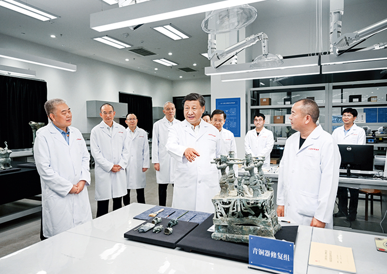 2023年6月2日,中共中央总书记、国家主席、中央军委主席习近平在北京出席文化传承发展座谈会并发表重要讲话。这是座谈会前,习近平2日下午在中国历史研究院考察。 新华社记者 鞠鹏/摄