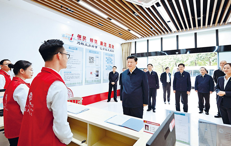 2023年12月14日至15日,中共中央总书记、国家主席、中央军委主席习近平在广西考察。这是14日上午,习近平在南宁市良庆区蟠龙社区党群服务中心考察。 新华社记者 燕雁/摄