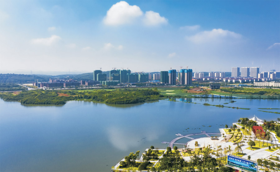 园区计划分三期开发,目前开发的是白杨湖中湖北岸,另有中湖东西南三岸、上湖东西两区工程。整个白杨湖景观带设计定位为协同发展的绿色示范窗口,精彩生活结合的生态文化公园,文化与魅力融合的城市中心,打造宜居宜业的生态核心。