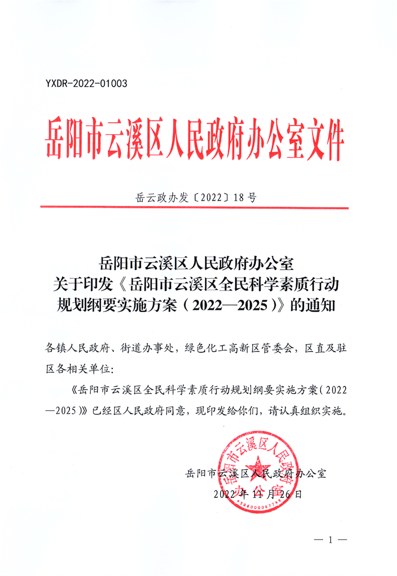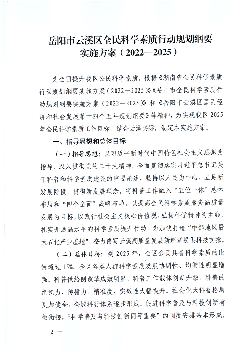区政府办关于印发《岳阳市云溪区全民科学素质行动规划纲要实施方案(2022—2025)》的通知