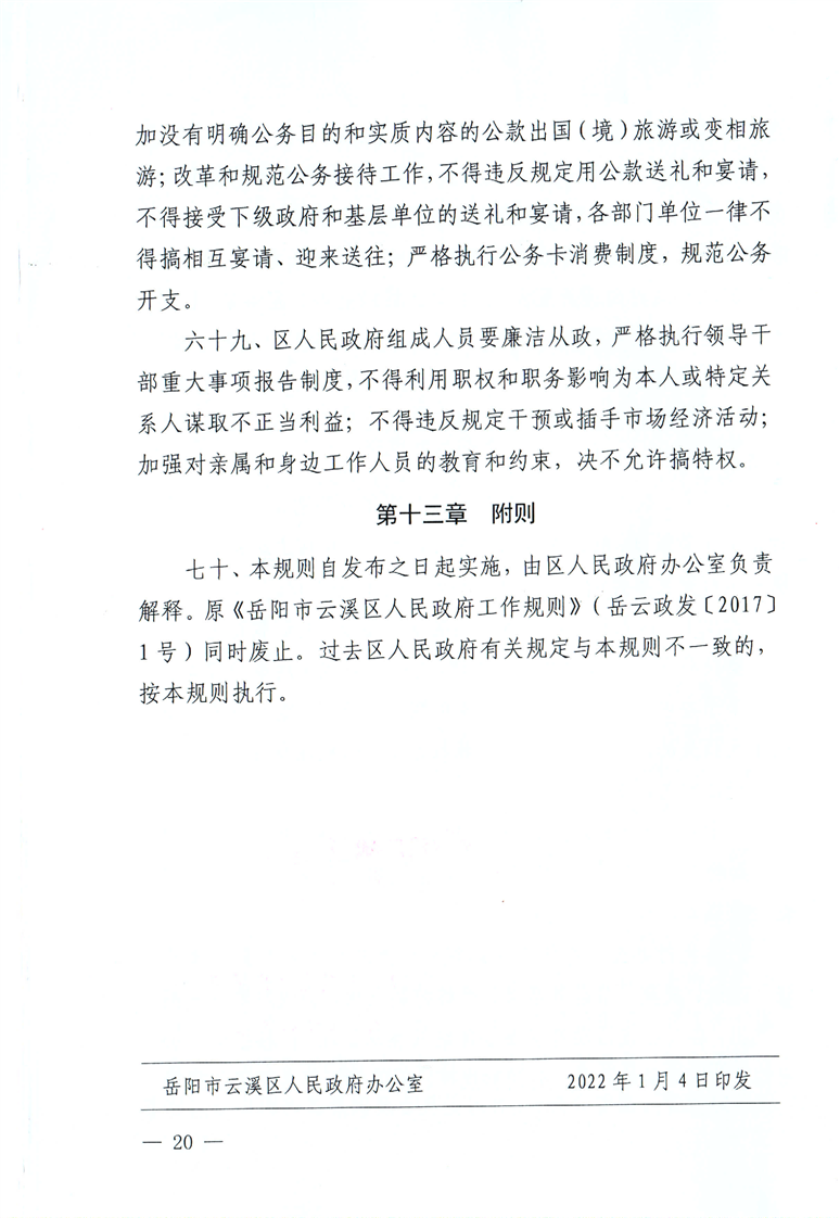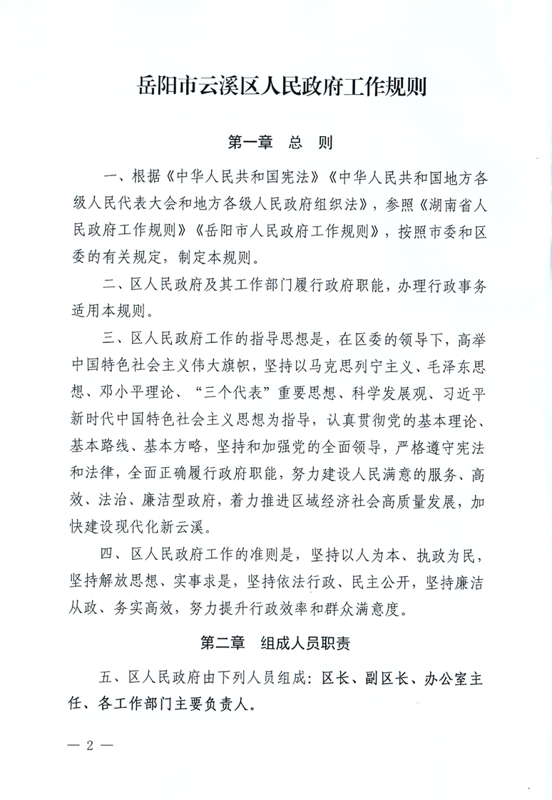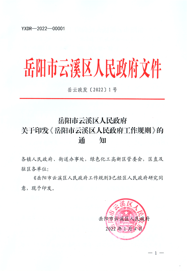 区政府关于印发《岳阳市云溪区人民政府工作规则》的通知
