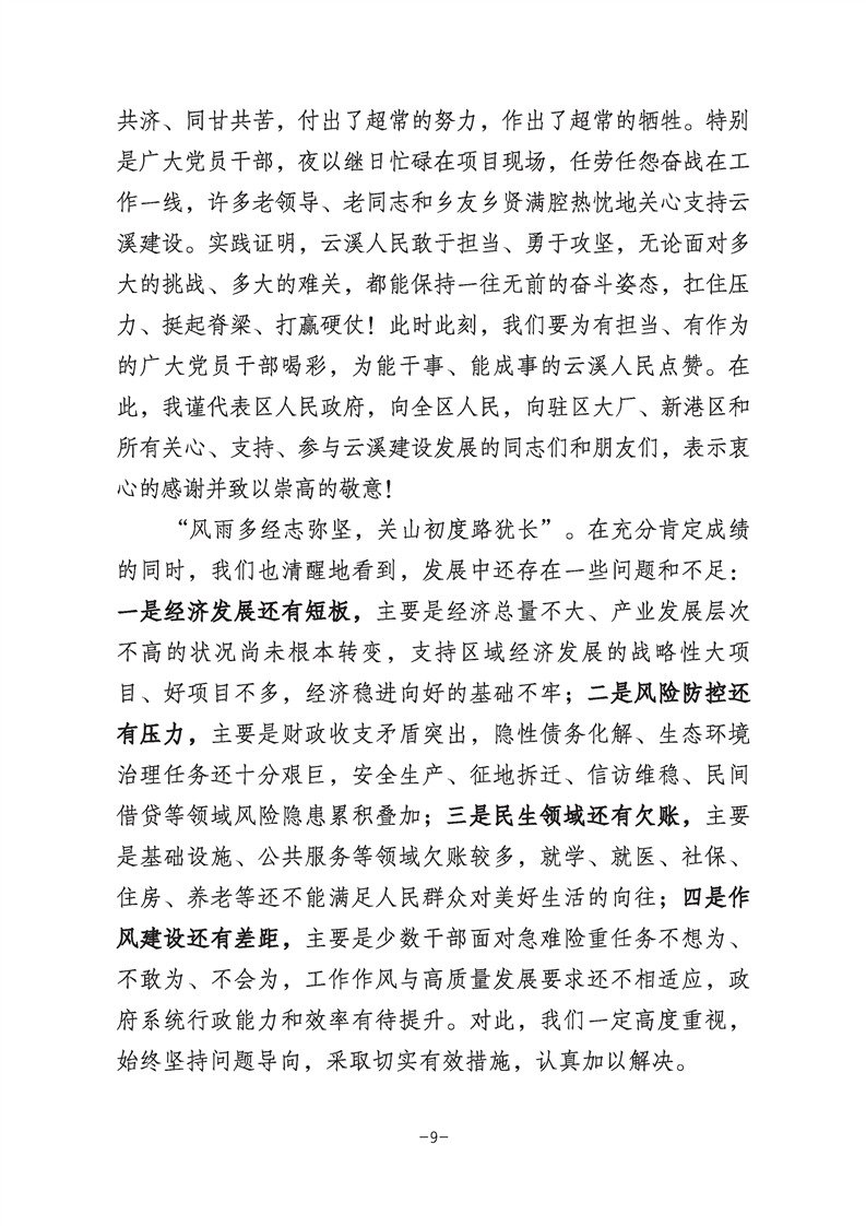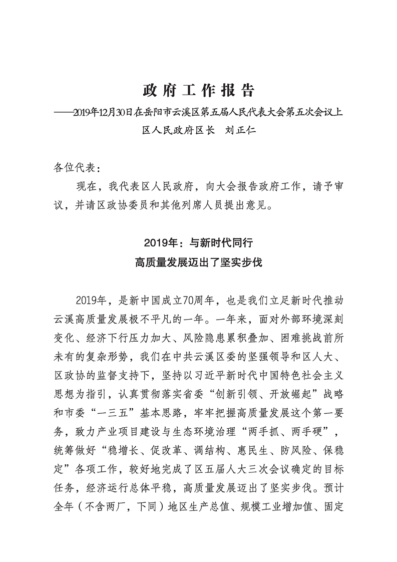 政府工作报告(2019年12月30日在岳阳市云溪区第五届人民代表大会第五次会议上)