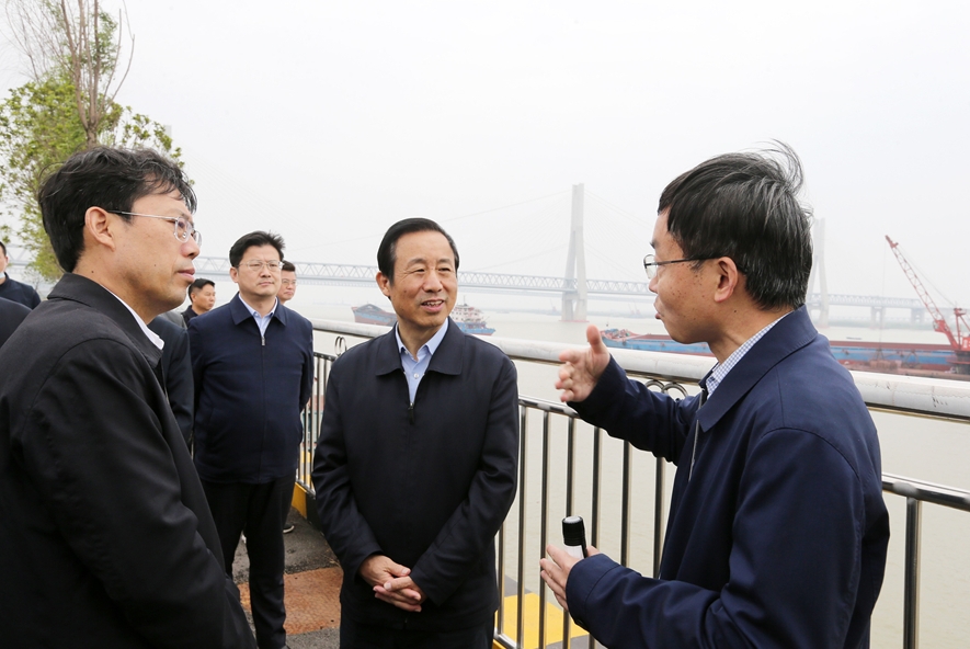 2020年4月22日,省委副书记、省长许达哲在岳阳市考察长江岸线整治、码头关停复绿等工作。