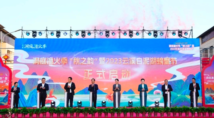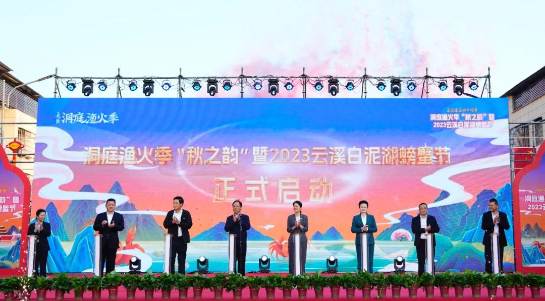 江天辽阔,大地成秋,又是一年菊黄蟹肥时。10月20日下午,洞庭渔火季“秋之韵”暨2023云溪白泥湖螃蟹节在陆城镇道仁矶街区举行。市委常委、宣传部部长刘启峰出席并宣布本届白泥湖螃蟹节正式启动,市领导邱虹、张中于、魏淑萍、刘铁健,区领导刘正仁、蒋春艳,市城投集团总经理冯锦等一起上台共同为洞庭渔火季“秋之韵”暨2023云溪白泥湖螃蟹节活动按下启动灯。