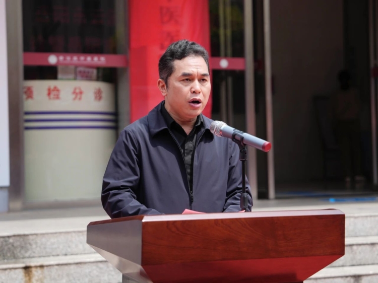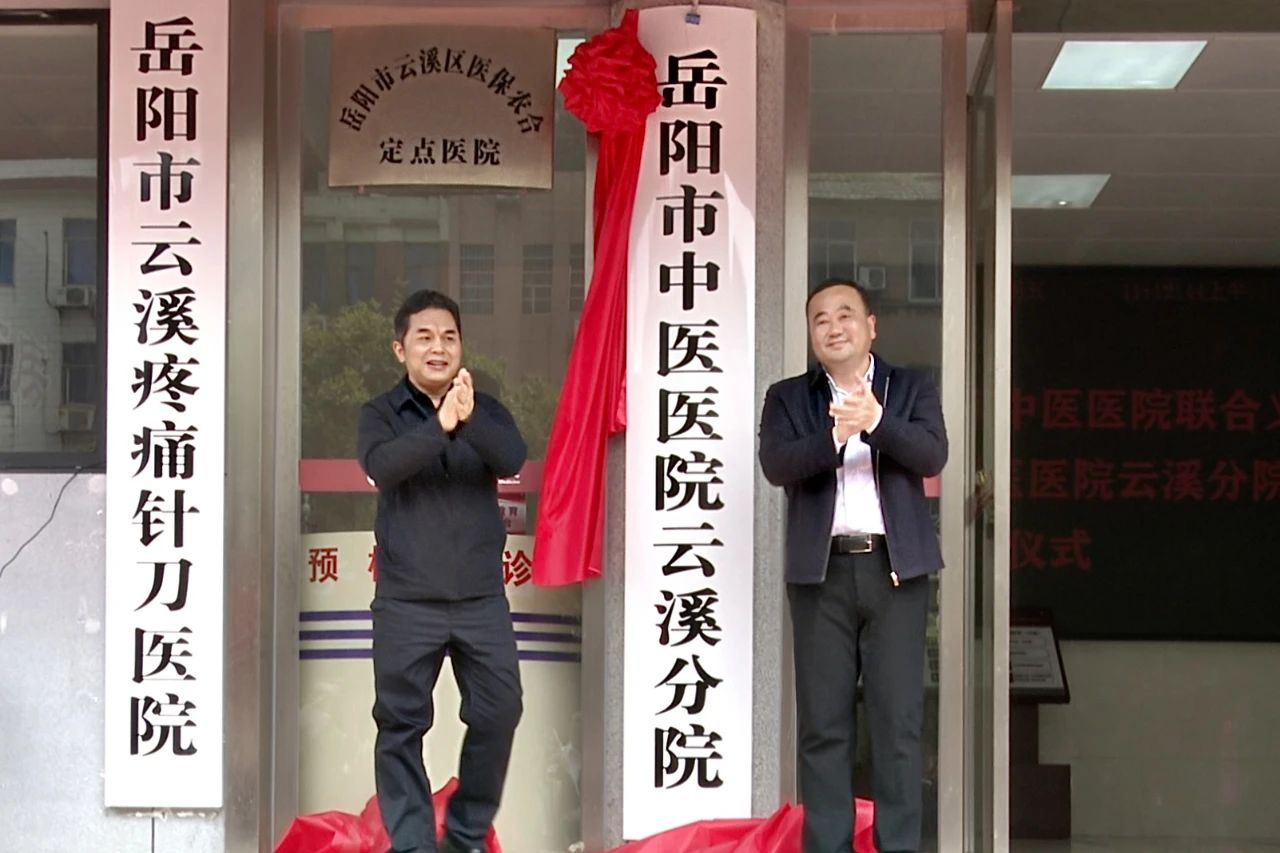 仪式上,岳阳市卫健委党组书记、主任余岳雄和云溪区区委书记刘正仁一同为岳阳市中医医院云溪分院基地揭牌。