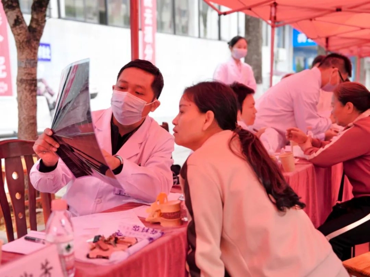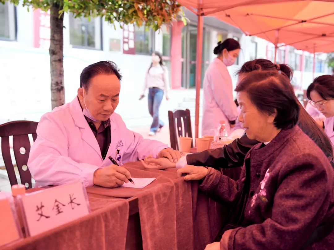 随后,岳阳市中医医院组织20多位各专业领域的专家及10多名中医药特色护理人员在云溪区中医医院开展大型义诊。活动中,专家教授认真细致地为当地居民进行中医把脉,看病查体,一对一耐心解答大家的健康问题,提出初步诊疗方案,得到了当地群众的一致好评。