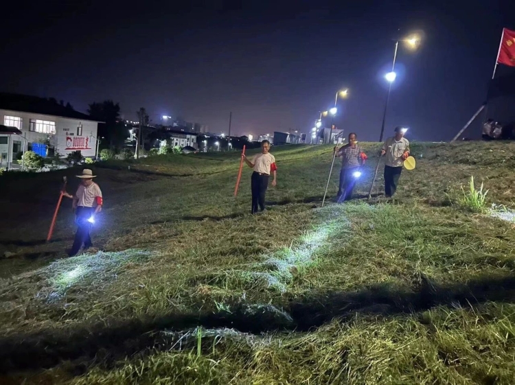 夜幕降临,永济垸、陆城垸等指挥部灯火通明,弯曲延绵数十公里的大堤、河岸上,一盏盏节能灯稳稳照亮着来往的身影……