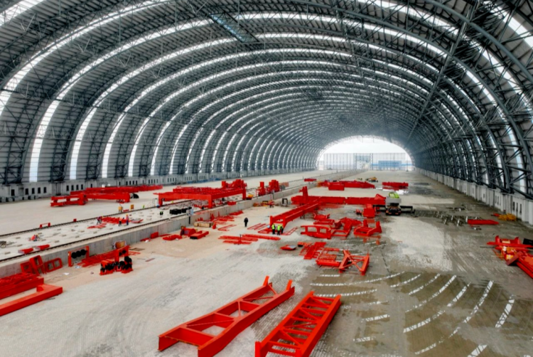 近日,岳阳铁水集运煤炭储备基地项目一期工程现场各类机械轰鸣声阵阵作响,80余名一线工人分布在两个条形仓内,正紧锣密鼓地进行斗轮取料机的安装和设备调试,火热的建设图景彰显着“起步就冲刺、开局就奋战”的昂扬姿态。