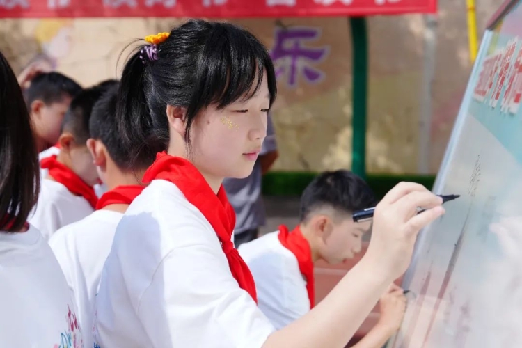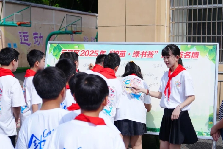 全体学生在“护苗·绿书签”行动主题签名墙上郑重签名,许下自觉抵制不良信息争做文化安全小卫士的承诺。