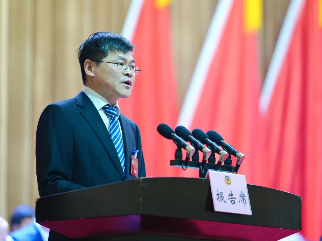 区政协主席王来平代表区政协第六届委员会常务委员会向大会报告工作。