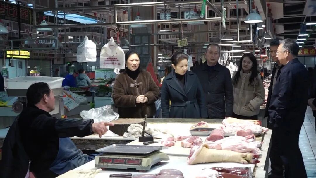 “现在肉价多少?”“供应充足吗?”走进汪家岭菜市场,蒋春艳向摊主了解市场价格及春节期间的出摊情况。她强调,农贸市场要严格落实主体责任,加强对食品安全、储存销售等各环节的管理,确保商品供应充足、品类齐全,满足群众多样化消费需求;各有关部门要切实扛起监管责任,加强巡查力度,严厉打击哄抬物价、假冒伪劣等违法行为,全力保障节日期间食品质量安全和市场价格稳定,同时要督促农贸市场、商超保持干净整洁的卫生环境,让居民买得舒心吃得放心。