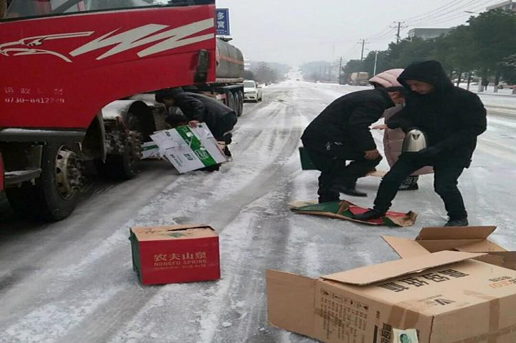 1月27日下午,因连续低温雨雪天气,路面结冰严重,云溪区交通运输局办公楼前一辆大型货车在冰雪道路上空转打滑,该局应急值班人员发现后,第一时间给车主送去纸箱、草垫、热水,帮助铺草垫、纸箱,通过半个多小时努力,成功帮助该货车脱离困境,过往群众和车主纷纷点赞。