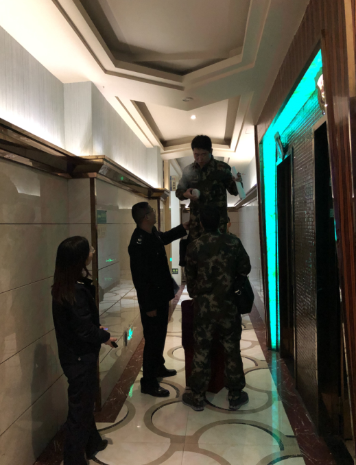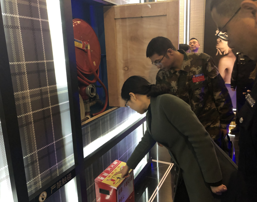 消防人员检查同一首歌KTV烟雾报警器是否有效