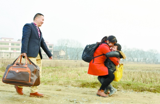 1月27日,双峰县井字镇花桥村,在广东务工的雷荣昌夫妇回到家里,6岁的儿子跑上来与母亲紧紧相拥。春节临近,该镇在外务工、经商的村民陆续回家,全镇洋溢着团圆喜庆的气氛。
