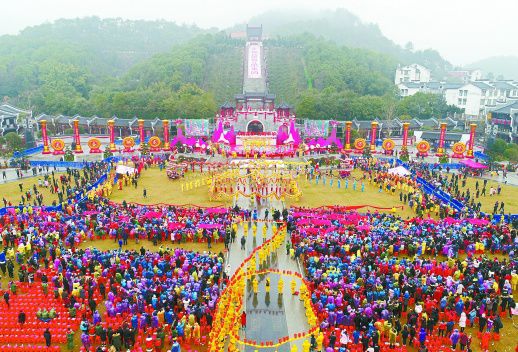 2月19日,衡阳市南岳区万寿广场,14支非遗龙狮队摆出“70”数字造型和年度汉字“奋”字造型,向新中国成立70周年献礼。当天,南岳庙会“火舞龙狮,万寿中华”祝融圣火祈寿仪式暨第二届中国南岳龙狮争霸赛火热举行,来自湖南、江西、广西、广东的14支非遗龙狮队进行了表演,吸引了近万名群众和游客观赏。(记者 郭立亮 通讯员 文兰 摄影报道)