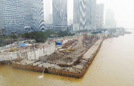 2月26日,长沙市湘江东岸防洪综合改造项目一期涉水主体工程施工现场,工人们全力以赴作业,以确保在5月1日前完成施工。该项目是长沙市重点工程,去年10月25日正式开工,建设内容包括湘江东岸杜甫江阁至银盆岭大桥5.1公里防洪堤加高加固、风光带景观绿化恢复、穿堤管涵及附属工程建设等,后续非涉水部分及景观亮化等附属工程将于2020年4月前完成。记者 童迪 摄