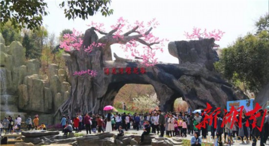 (图为湖南省森林植物园樱花绽放,市民争相拍照留念)