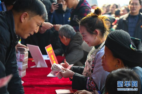 湖南湘西花垣县十八洞村村民在清点发放的产业收益金(1月17日摄)。新华社记者 薛宇舸 摄