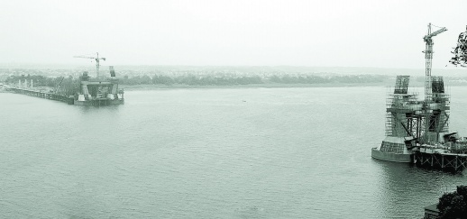 2005年7月20日,建设中的莲城大桥。(资料图片)周立春 摄