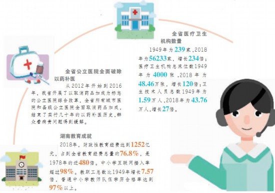 9月18日,湖南省政府新闻办召开湖南省庆祝新中国成立70周年系列新闻发布会第8场,省教育厅党组书记、厅长、省委教育工委书记蒋昌忠,省民政厅党组书记、厅长唐白玉,省卫健委党组书记、主任陈小春,省人社厅党组副书记、副厅长黄赞佳,省住建厅党组副书记、副厅长舒行钢发布新中国成立70年来全省民生改善方面的成就。