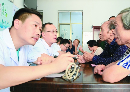 8月21日,2019年南华大学博士志愿者三下乡服务团走进祁东县凤歧坪乡,为这里的乡亲们送医送药。 曹正平 曾昊岚 摄影报道