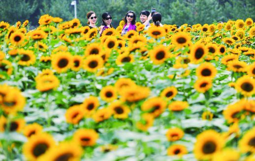 10月5日,湖南省森林植物园,游客在向日葵花海中赏花拍照。国庆假期,该园10万余株向日葵竞相绽放,吸引了众多市民、游客前来观赏。(记者 辜鹏博 通讯员 彭炜 摄影报道)