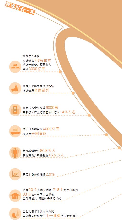 财政民生支出增长7.7%,占财政支出的70.3%;城乡居民人均可支配收入预计分别增长8.6%左右和9.2%左右;高校“双一流”和教育信息化2.0建设加快,成为国家首批产教融合建设试点省;开展药品集中带量采购试点;“一村一辅警”实现全覆盖,“城市快警”平台全面铺开。