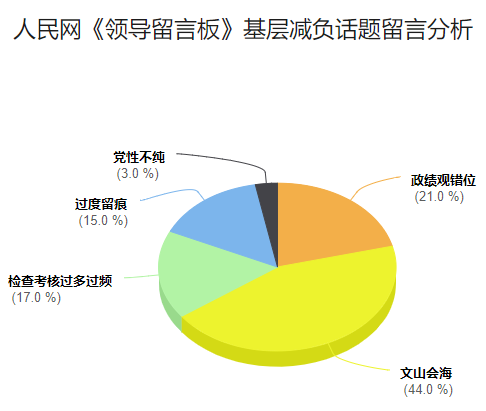 2019年3月,人民日报政治版、人民网《领导留言板》联合发起基层减负话题留言征集活动。近5000条留言中,超四成网友认为基层负担重在文山会海。