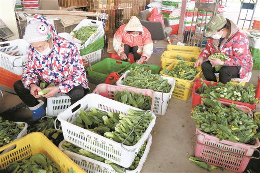 ▲2月15日,通道侗族自治县万佛山镇杏花村,农户在装运新鲜的白菜薹,准备销往粤港澳地区。李政灿 李尚引 摄影报道