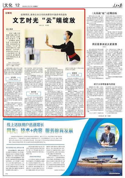 “健康养生、合理膳食、大江南北美食制作、心理疏导……这些都是广大群众近期极为关注和喜爱的内容。我们积极进行专题推荐,满足群众需求,陪伴他们的居家生活。”文化和旅游部全国公共文化发展中心相关负责人表示。疫情防控期间,全国公共文化发展中心在国家公共文化云、国家数字文化网、文旅e家等平台开展数字文化服务,页面访问总量已超过1600万人次。自2月9日起,国家公共文化云每天推出一条健康保健、艺术普及、心理疏导等方面的视频资源,目前访问总量超过1400万次。