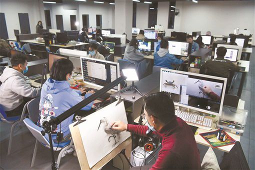 云课堂 3月19日晚,美术老师胡文郡(前)在线上给全国各地的学生授课。艺森合尚教育学院自2013年开始在“腾讯课堂”做线上美术教育。疫情期间,学生增加了两倍。