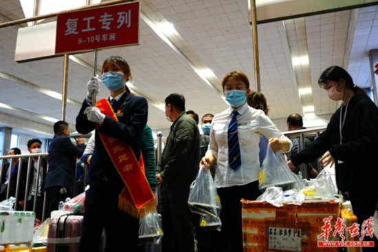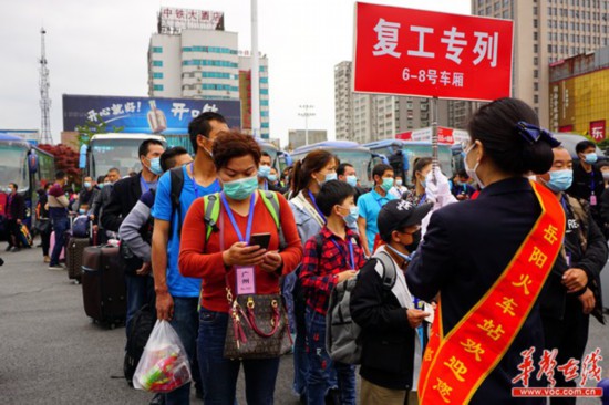 湖南首列湖北籍农民工复工专列从岳阳火车站开出
