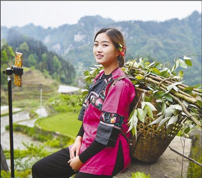 从小在十八洞村长大的施林娇,对这里很熟悉,苗族的特色文化和日常生活都是她直播的灵感来源,做农活、烹饪苗族特色菜、唱苗歌等都是她的直播内容。他们希望能通过直播平台帮助乡亲们的特色产品拓宽销路。目前,他们在一家直播平台已经有了近5万“粉丝”。“回到家乡创业,能为家乡做点小小的贡献,我就实现了自己的人生价值。”施林娇说。