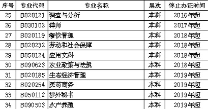 表4停止办理毕业证的专业
