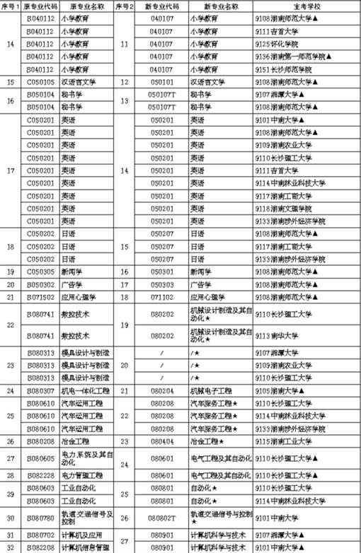 说明:1.表中主考学校后标注了“▲”为承担相应专业社会考生主考任务的学校。2.表中新专业代码后加“K”的为国家控制专业。