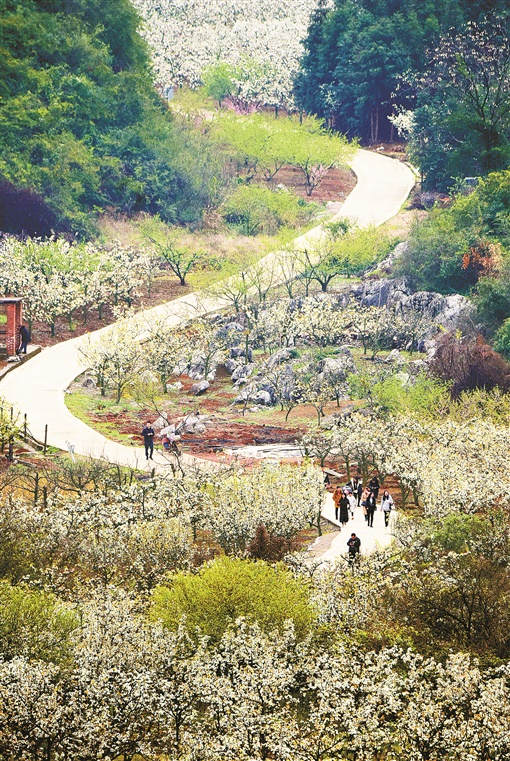 2月27日,蓝山县太平圩镇大洞村,游人在梨园赏花留影。近期,该村万余亩梨花竞相开放,一树树、一簇簇,吸引不少游人前往观赏。黄春涛 摄