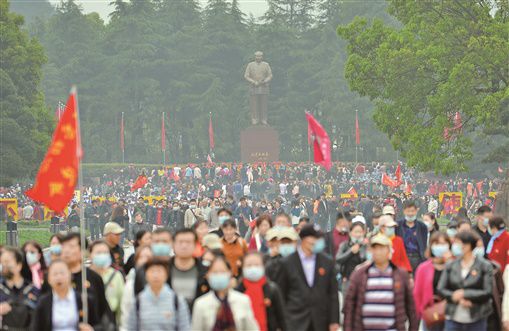 4月15日,韶山毛泽东广场游人如织。 湖南日报·新湖南客户端记者 李健 摄