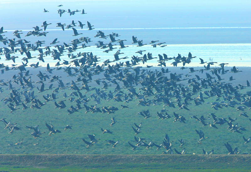 六门闸社区所处的东洞庭湖国家级自然保护区,大量候鸟前来越冬。姚毅摄