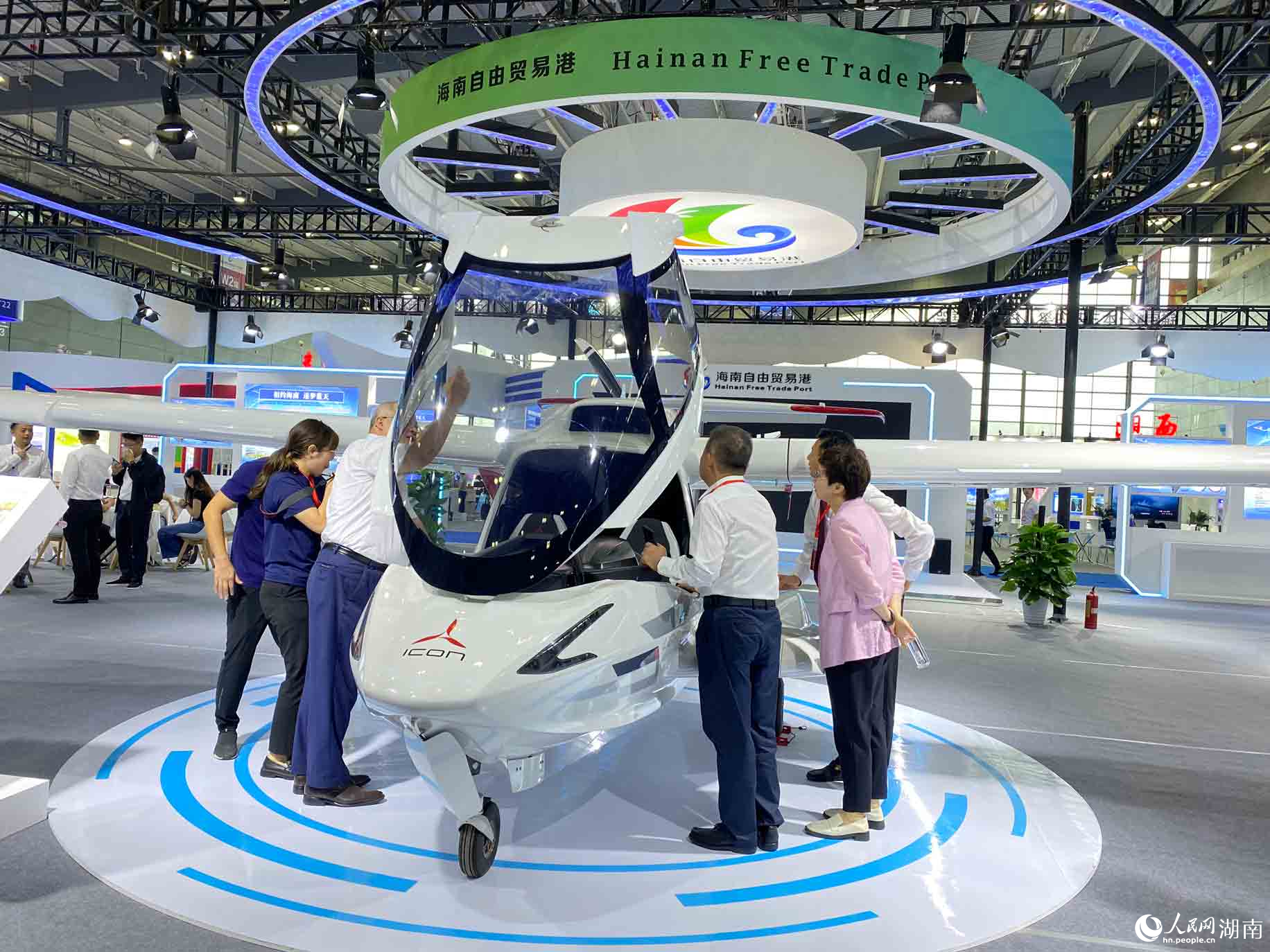 海南自由贸易港展区轻型运动飞机展示。 人民网 向宇摄